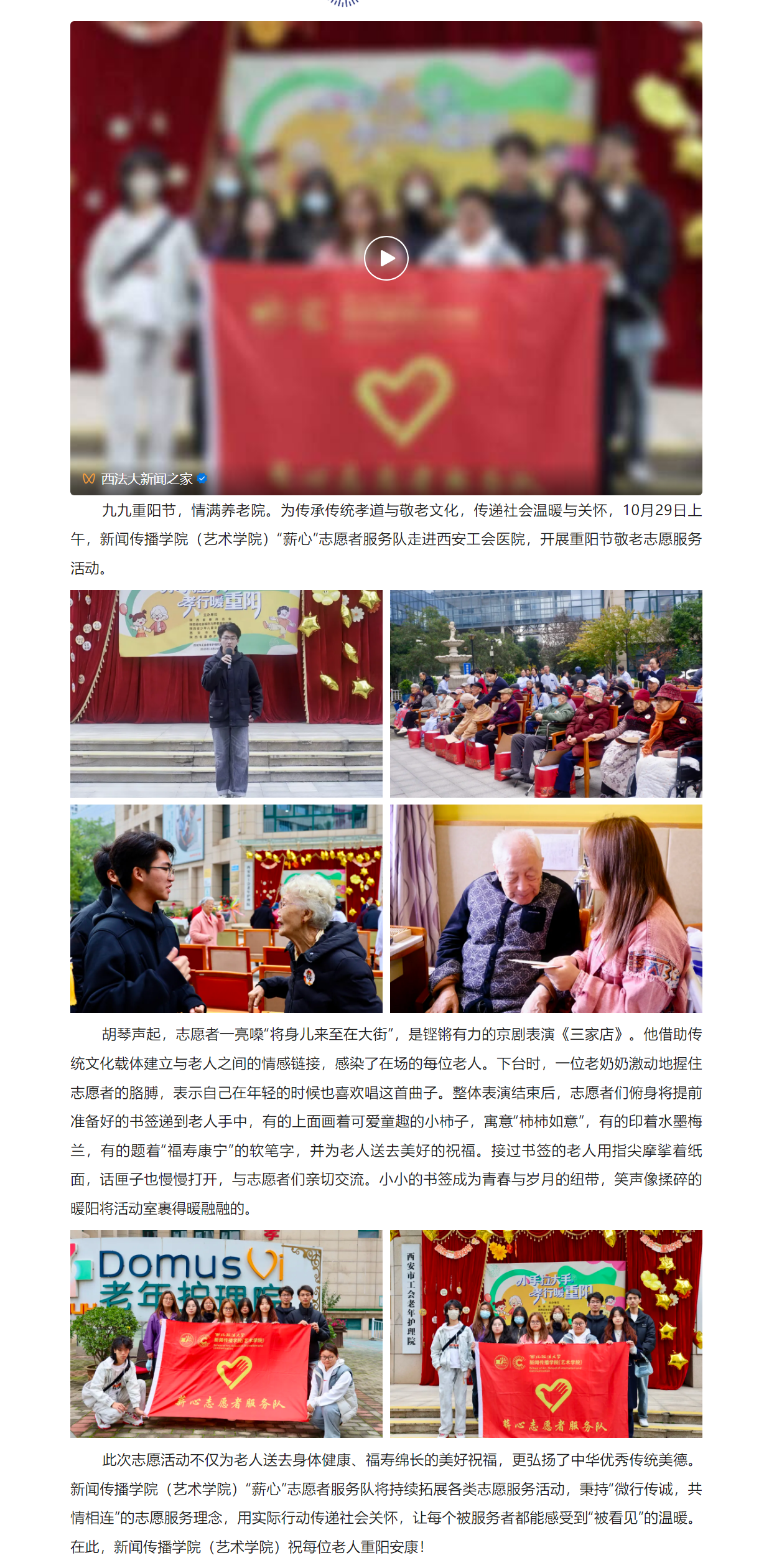 88直播app “薪心”志愿者服务队走进工会医院开展重阳节志愿服务活动