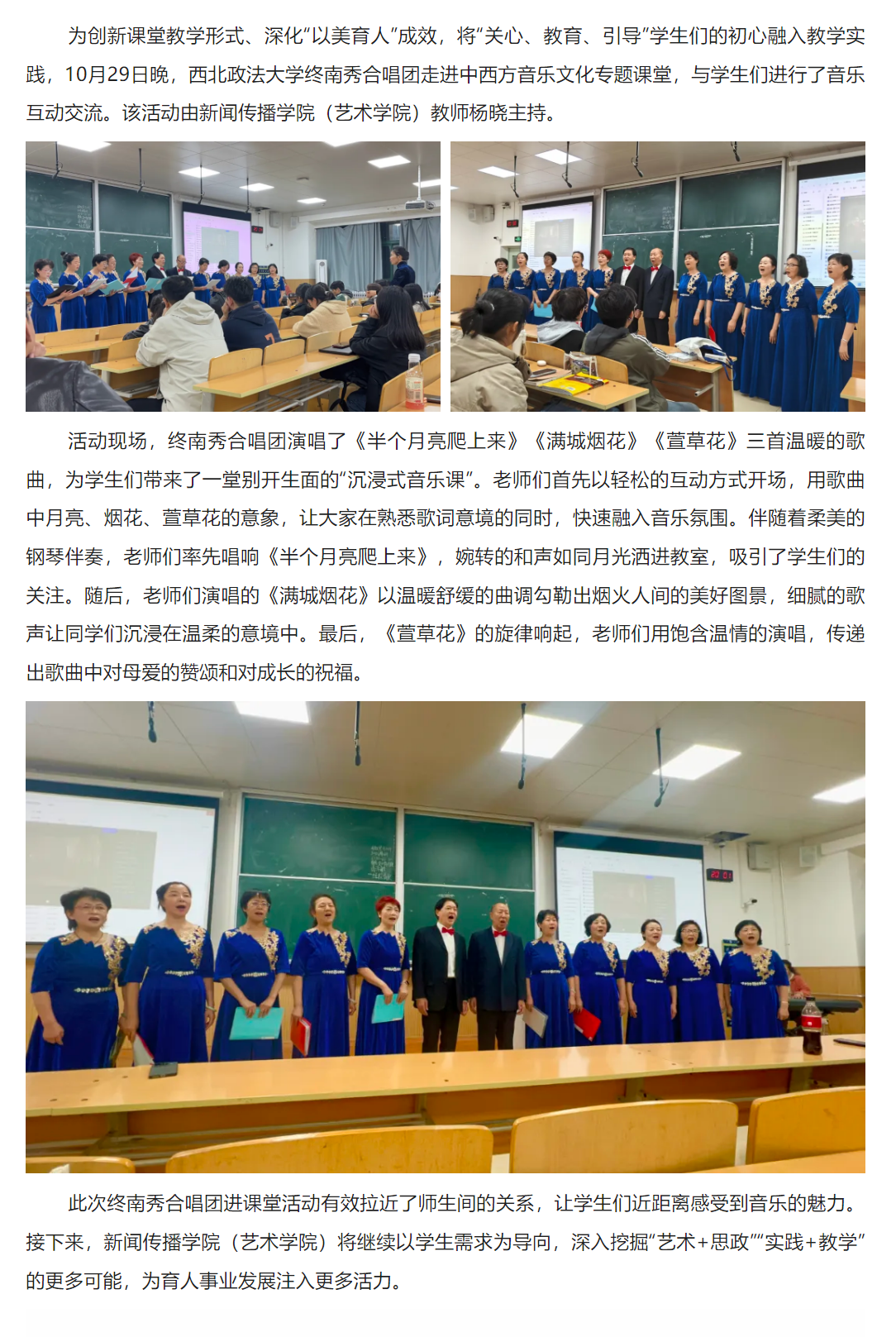 西北政法大学终南秀合唱团走进中西方音乐文化专题课堂