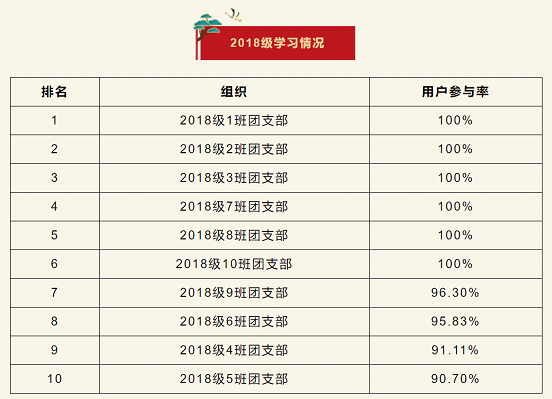 在上一期“青年大学习”网上主题团课的学习中,2018级1班、2班、3班、7班、8班、10班团支部位居榜首。