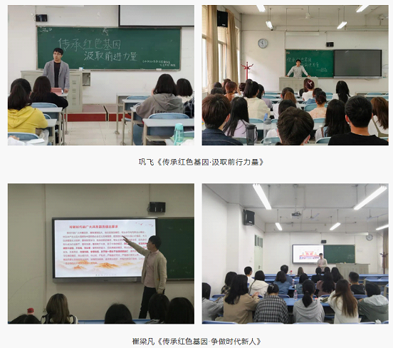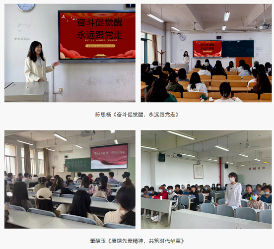 学院团委书记巩飞、团总支书记崔梁凡分别以《传承红色基因·汲取前行力量》和《传承红色基因·争做时代新人》为题,学院2020级5班团支部书记陈思杨、2021级5班团支部书记董醒玉、2021级6班团支部书记吴云菲分别以《奋斗促觉醒,永远跟党走》《赓续先辈精神,共筑时代华章》《青年不忘初心跟党走,奋勇建功新时代》为题面向学院各年级团支部开展团课讲授。讲解过程中,团干部们将学校红色基因融入团课内容,发挥学院先进典型的教育引导作用,通过理论阐释、案例分析等方式,进一步引导青年学生树立永远跟党走的信念和信心,以青春奋劲的姿态迎接党的二十大胜利召开。