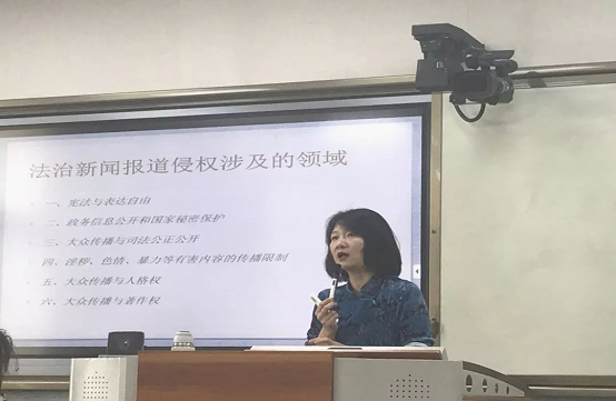 随后,郭老师向同学们讲解了大众传播法的法律渊源,梳理了基本的法律框架,还讲解了大众传播法的分类,通过“渭南书案”和“《纽约时报》诉沙利文案”,让同学们理解宪法与表达自由。