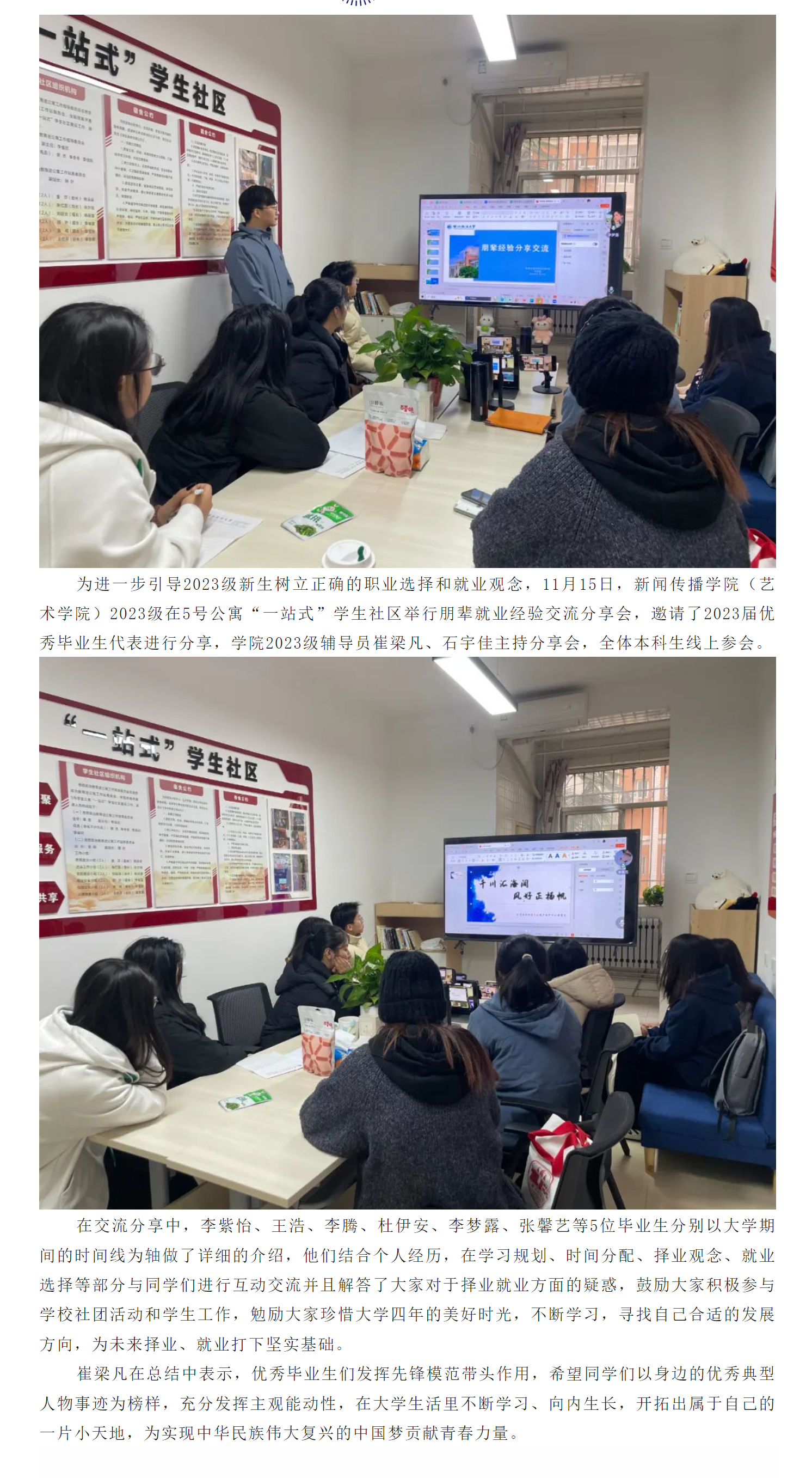 “一站式”学生社区 | 88直播app 2023级举行朋辈就业经验交流分享会