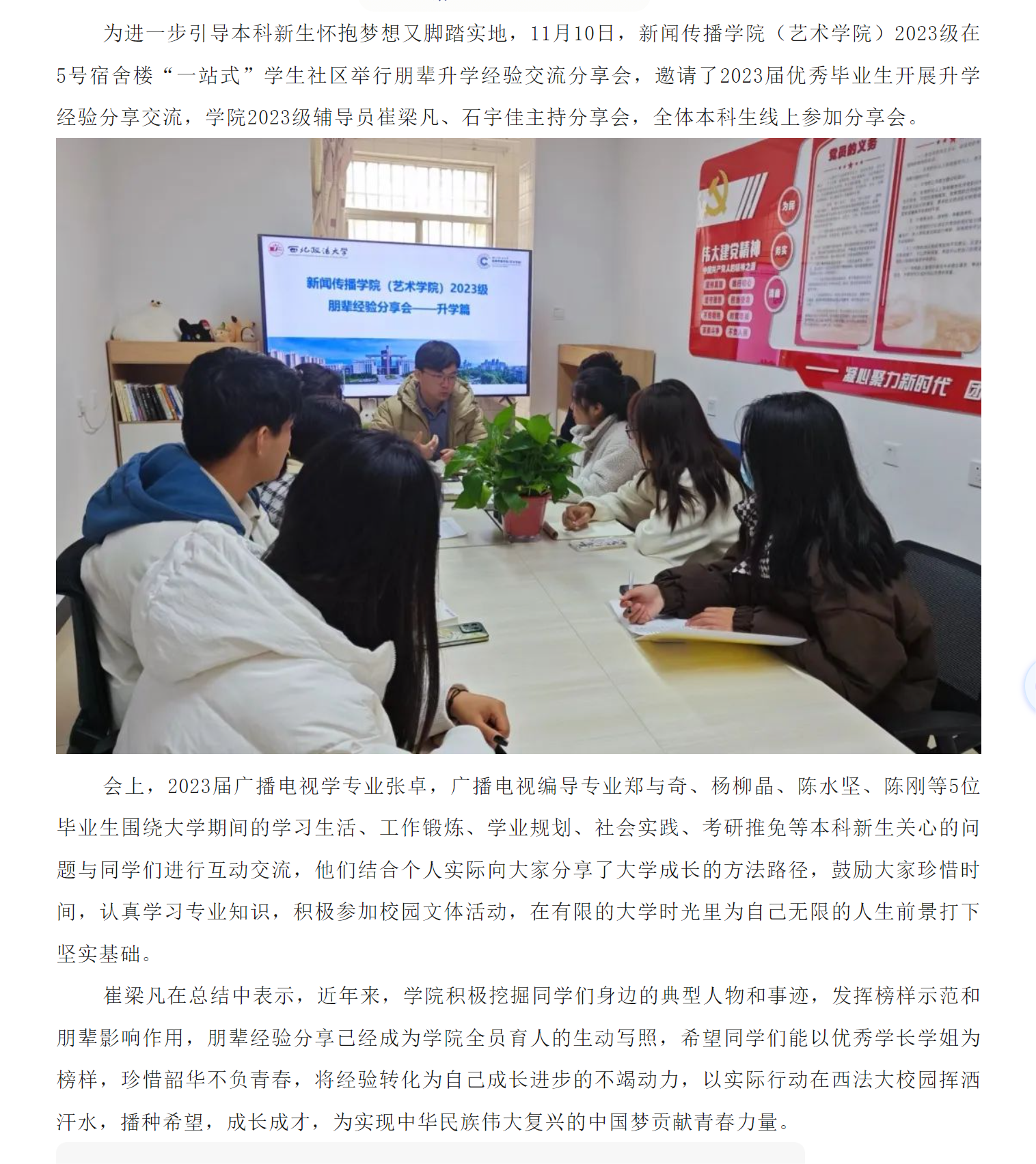 “一站式”学生社区 | 88直播app 2023级举行朋辈升学经验交流分享会