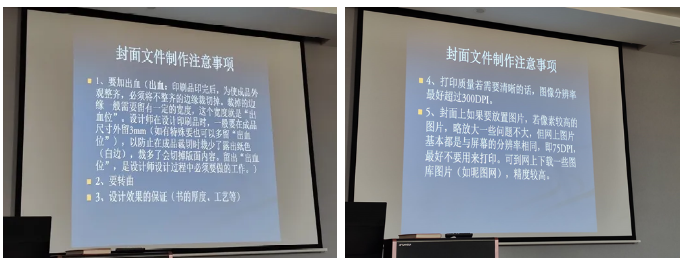 潘老师指出,要制作一本精彩的图书,首先要制作一个好的封面。书籍封面是一本书给人的第一印象,要想让一本书吸引读者,就要让封面有特色、有新意。