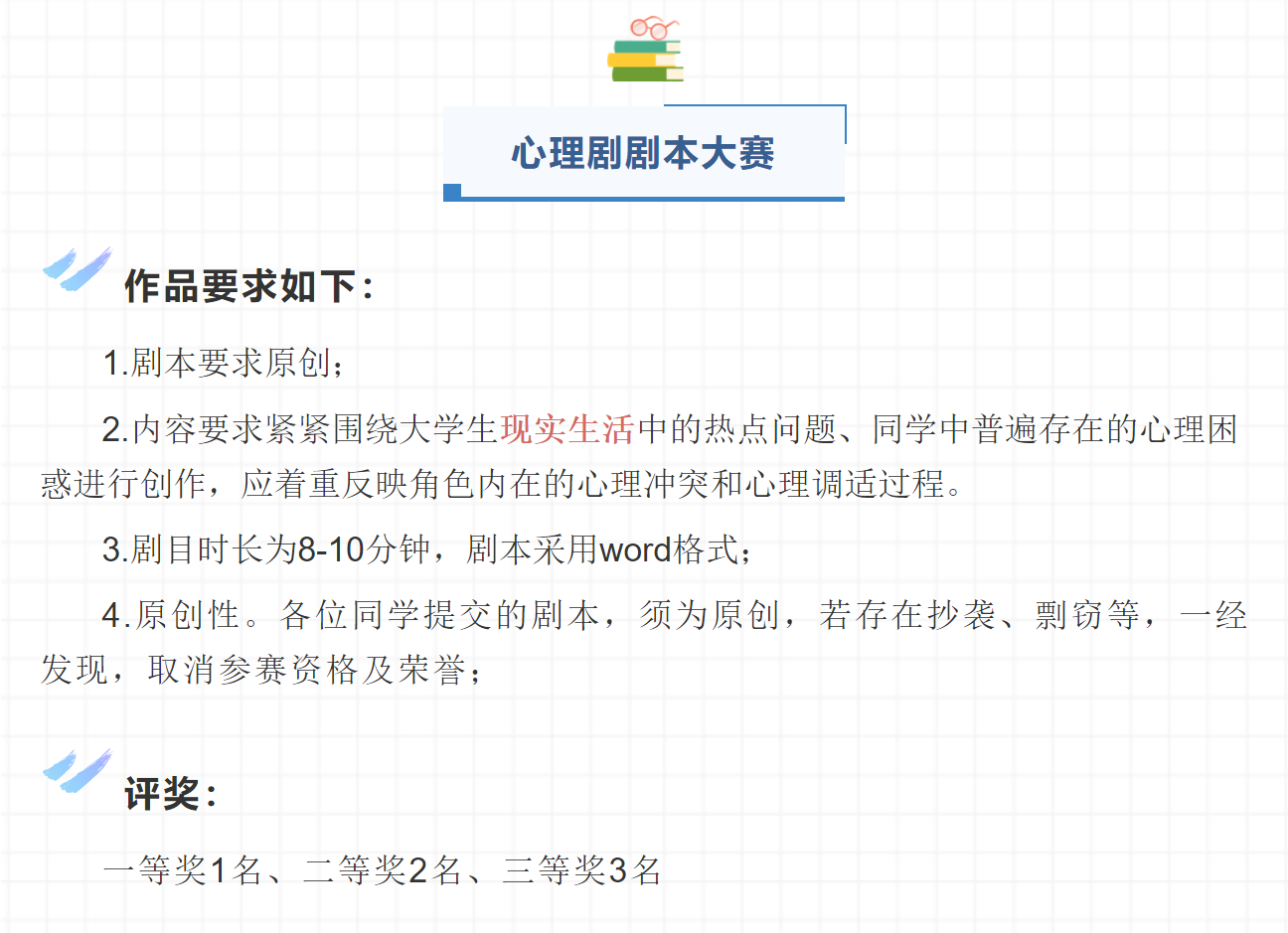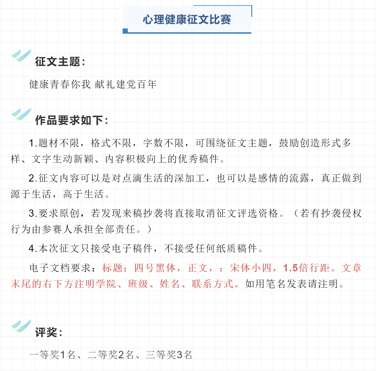 为提升心理育人、资助育人实效,培养学生理性平和、积极向上的健康心态和诚信感恩的意识,助力学生成长成才。响应学校要求,88直播app下载安卓版 开展第十三届心理健康教育暨第九届诚信教育宣传季系列征集活动。