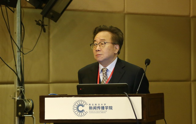 上半场论坛由中南财经政法大学新闻与文化传播学院胡德才院长主持,西南政法大学全球传播学院李韧副院长担任与谈人。