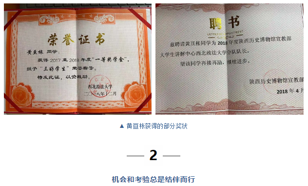 在大一下学期,一次偶然的机会,黄亘枨看见陕西历史博物馆政法讲解队的招新,抱着试一试的心态她填了一份报名表。