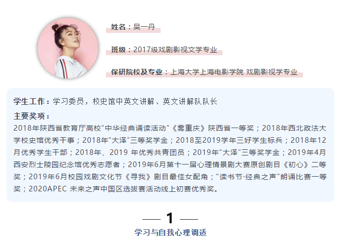 保持着良好的学习习惯,并将学习、工作与休息相协调,吴一丹在校期间专业排名都是第一名。