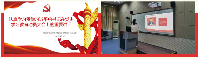 2021年是中国共产党百年华诞。为深入贯彻习近平总书记在党史学习教育动员大会上的重要讲话,88直播app 党委研究生支部于9日晚在录播教室对党史相关内容进行了专题学习。