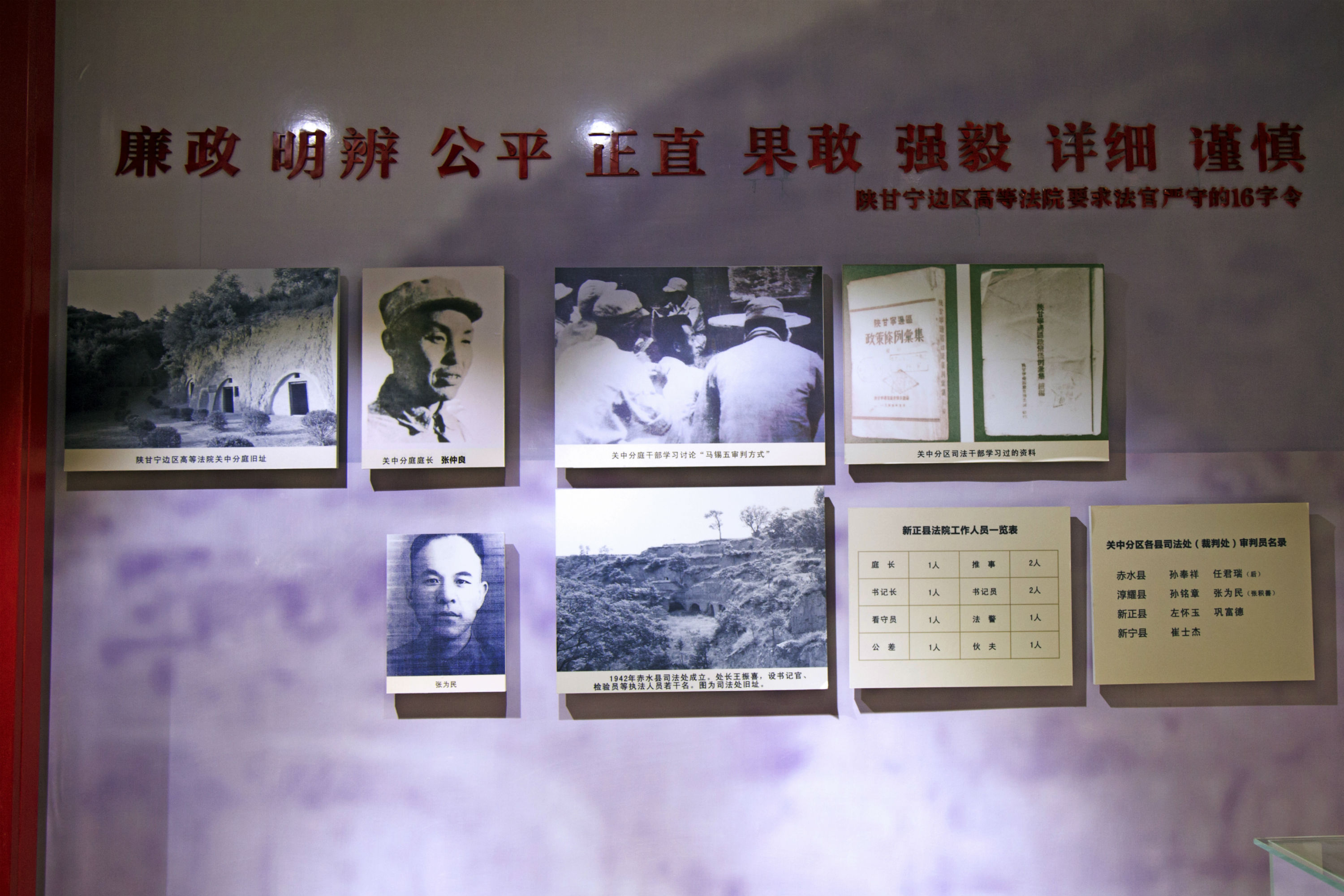 陕甘宁边区关中分区成立了边区高等法院关中分庭,各县成立了法院或司法处(裁判处),充实壮大了司法队伍,对司法工作者进行经常性的培训教育,推广“马锡五审判方式”,向群众普及法律法规,维护了社会稳定,巩固了抗日民主政权。