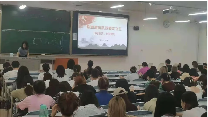 第一位进行宣讲的同学是马克思主义学院研究生董溪,宣讲的主题是“铁道游击队政委文立正日寇未灭,何以家为”。在正式宣讲之前,她先带领大家观看了经典影视《铁道游击队》的片段,由此引入了本次宣讲的主人公--文立正。董溪学姐将文立正政委的一生分为“投身革命”、“施展才干”、“彰显担当”、“英雄长存”四个阶段,讲述了文立正书记传奇的一生。