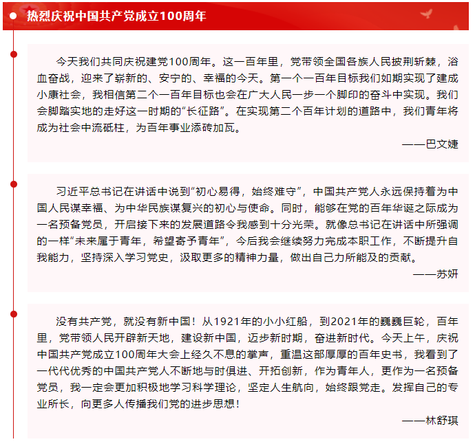 7月1日上午,庆祝中国共产党成立100周年大会在北京天安门广场隆重举行。88直播app下载安卓版 学生党支部同学认真学习了习近平总书记在大会上的重要讲话,大家围绕实际分享心得,会议由学生党支部书记刘璇主持。