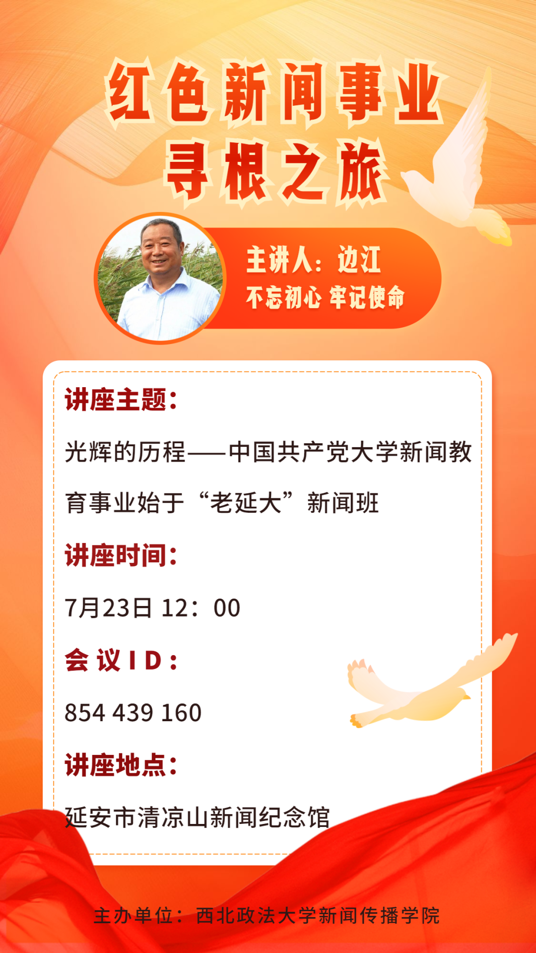 讲座主题:光辉的历程——中国共产党大学新闻教育事业始于“老延大”新闻班