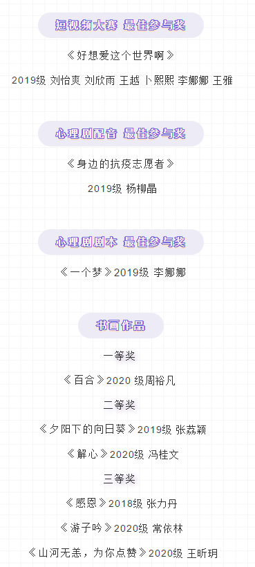 88直播app 第十三届心理健康宣传季征集作品结果出来啦,现将获奖名单公示如下,请获奖者于6月4日中午14:00钟到三号楼106领取证书。