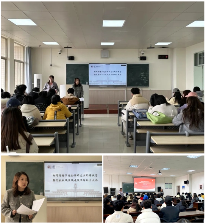 研究生、本科生各年级召开纪律教育暨学风建设动员大会,学院党委副书记秦音参加会议,各年级辅导员老师主持大会。