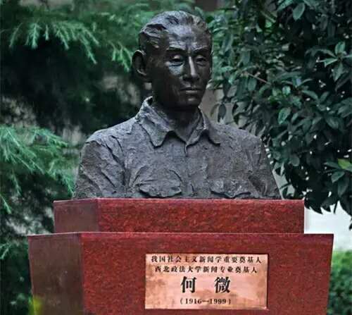 颁奖结束后,各位代表移步至西北政法大学致知楼前参加揭幕仪式,新落成的何微铜像由宋觉书记与何安琪先生共同揭幕。何微铜像为何老的半身像,再现了何老作为革命者和新闻人坚定无畏的精神风貌。全体参会人员在何老铜像前感恩留念。