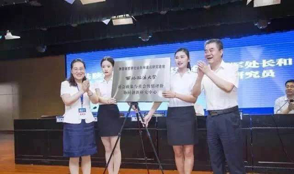 经专家评审、社会公示并报省委宣传部和省哲学社会科学规划领导小组研究决定,西北政法大学社会政策与社会舆情评价协同创新研究中心为陕西省哲学社会科学重点研究基地。6月25日上午,陕西省哲学社会科学重点研究基地——西北政法大学社会政策与社会舆情评价协同创新研究中心在长安校区隆重揭牌。