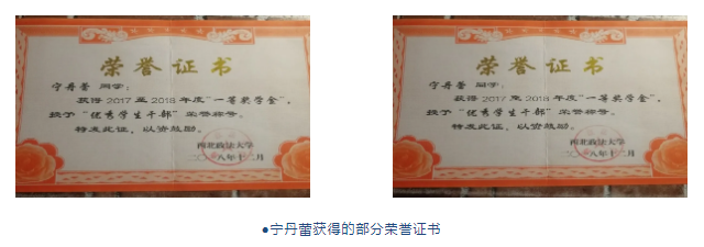 主要奖项:2017-2018年间获得国家励志奖学金;第二十三届校园艺术节“优秀个人”;一等奖学金,三好学生 ;2018-2019年间获得优秀共青团员;优秀“图管会”干部 ;一等奖学金,优秀学生干部;2019年6月获得第十届新闻采访大赛二等奖和第二届日日新纪录片大赛评委会特别推荐奖学生工作及社会实践:班级学习委员,校学生会担任学习部科技创新中心主任,大二暑期在西部网新媒体中心担任微博编辑。