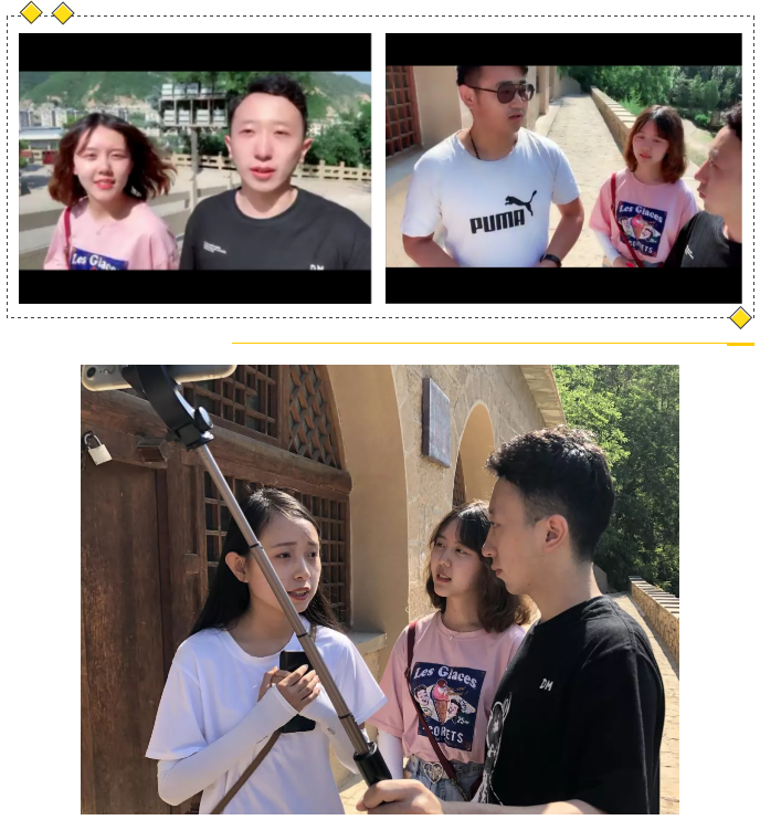 整个过程由刘岳麓同学主持拍摄,张玥同学担任讲解员,他们对宝塔山上的日本工农党校旧址等文物景观都进行了介绍,也采访了团队同行的其他同学,并简单地讲述了他们的实践任务和实践体会。