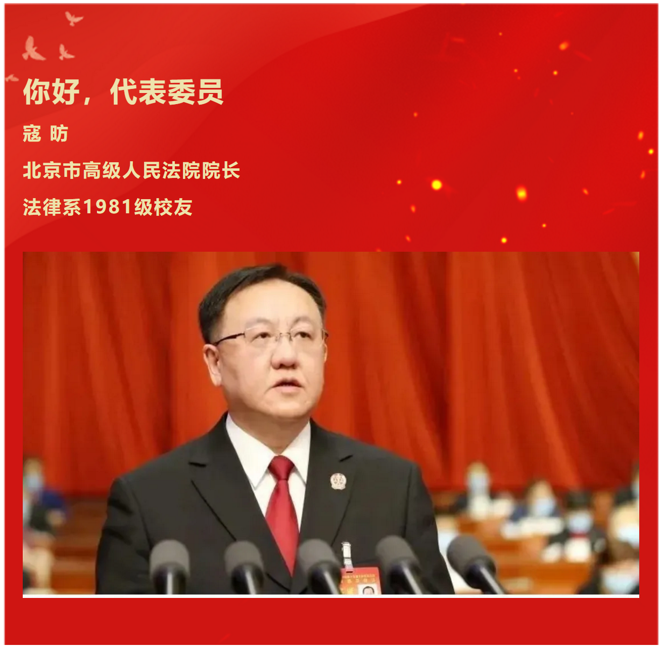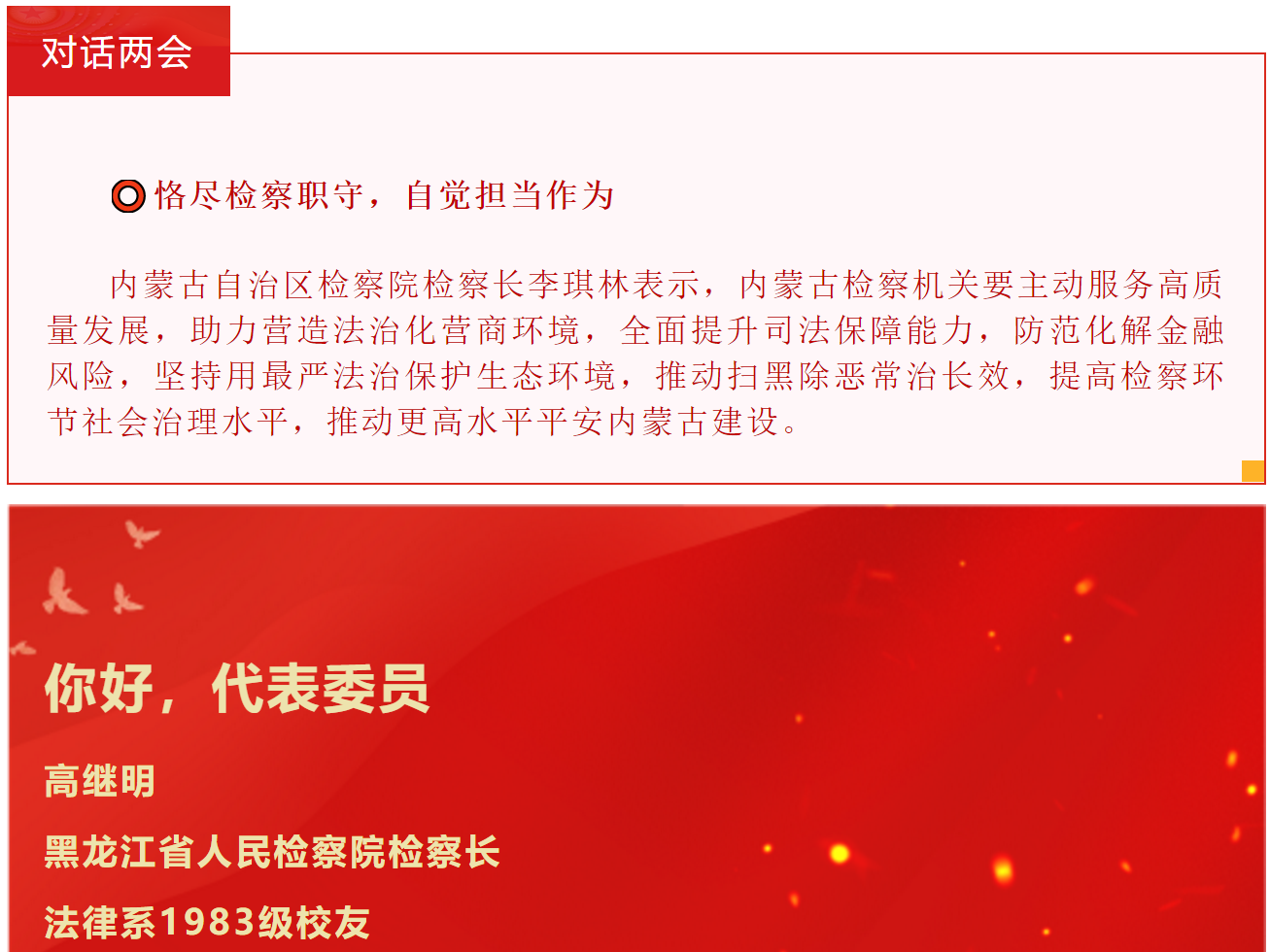 2021年是中国共产党成立100周年、“十四五”的开局之年、全面建设社会主义现代化国家新征程的起步之年。近日,肩负人民重托的数千名代表委员汇聚北京,中国如期进入”两会时间”。据小编统计,截至今日,共有数十位西法大校友积极履行职责,结合自身工作、围绕社会热点,建言献策。