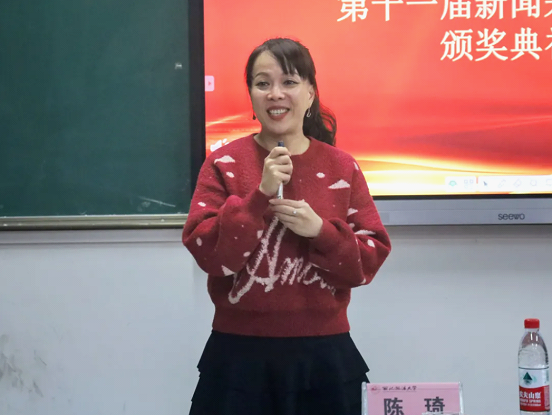 陈琦在致辞中点赞了同学们积极参与采写大赛的热情。她鼓励大家,既然选择了新闻这条路就应该保持自己对新闻的热爱,坚持自己选择新闻时的那份热忱,不忘初心,勇毅前进。