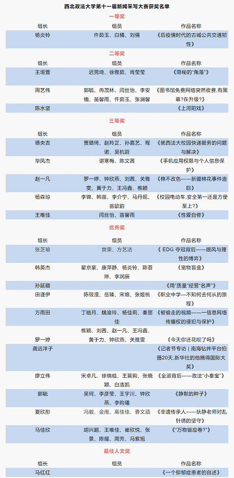 本次新闻采写大赛的成功举办,为广大爱好新闻事业的学生提供了锻炼自己的机会和展示自我的平台。各位参赛同学都在比赛中锻炼自身新闻采写经验,提升综合素养。
