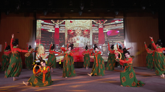 钟声响起,大殿开宴。瞧!一群灵动娇俏的少女从古画中向我们而来。88直播app 舞蹈《唐宫夜宴》在大家的欢呼声中揭开帷幕。她们用婀娜多姿、秀逸韵致的舞姿将大唐盛世的传统文化形象完美地呈现在舞台上。演员们将少女的娇俏演绎的活灵活现。让观众们沉浸在她们编织的绚丽大唐梦境中。丰富的表情洋溢着满满的文化自信,传统文化在她们的舞姿中活了起来!