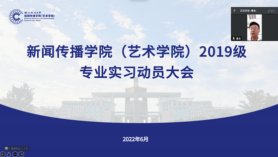 崔梁凡介绍了当前大家的实习单位落实情况,他通过案例提醒同学们在实习过程中一方面要认真参与到实习实践活动中,还要在实习期间防范各类诈骗并严格遵守防疫规定。他鼓励大家积极主动开展实习实践,提升专业能力,为自己就业打下坚实基础。